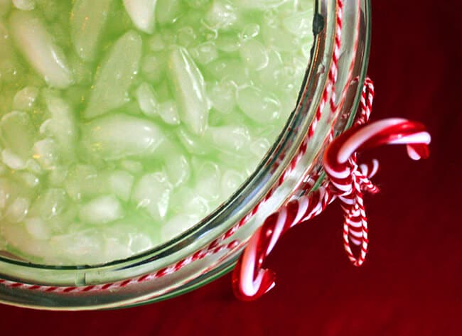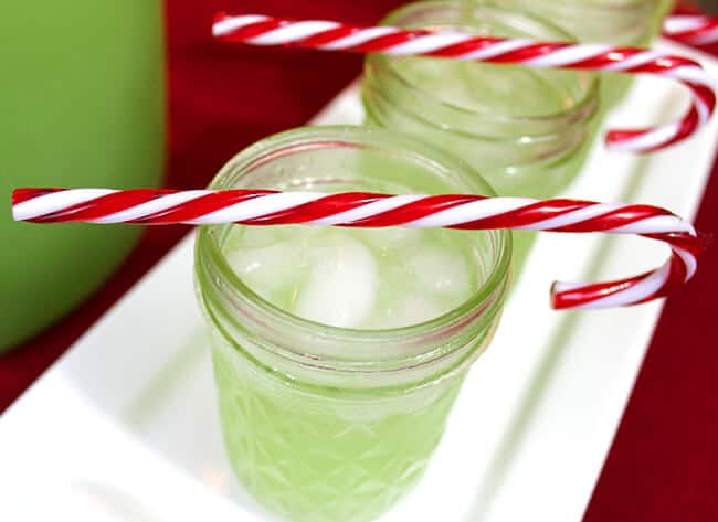 this Grinch Juice is a great compliment to any Christmas Party. kids and adults will enjoy it’s fun theme. the lemon-lime flavor is a light and refreshing compliment to holiday appetizer spread. and pssst, using the Sweet ‘N Low cuts down on the extra calories of added sugar, you are saving 2 cups of sugar from this drink….plus, i can’t tell the difference in this particular drink. add more or less according to your taste.